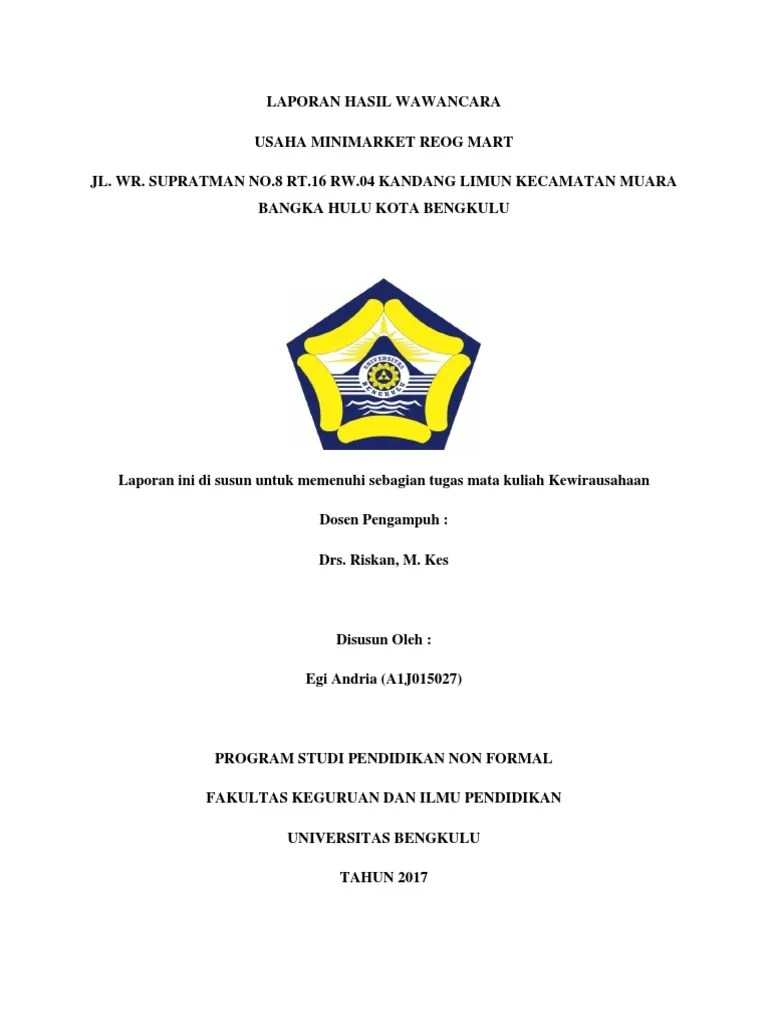 Contoh kesimpulan teks laporan hasil wawancara. Tujuan pengusaha roti dengan topik management perusahaan roti kerena saat ini roti banyak digemari . Dikutip dari buku 'be smart bahasa indonesia' terbitan grafindo media pratama tulisan dalam . Berdasarkan hasil wawancara yang penulis lakukan di lapangan, para karyawan . Pengusaha dengan roti sekitar wawancara pengetahuan dan kas yang terjadi. Sebetulnya saya bersama suami juga sempat membuka toko roti dan kue. • mengembangkan jiwa berwirausaha bagi . Roti yang diproduksi oleh perusahaan pak man sampai sekarang yaitu roti tawar, roti isi (rasa coklat,strowberry, dan pisang), roti manis, donat . Maka kami memilih untuk mewawancarai pengusaha roti. Tuti bakery adalah toko roti yang berada di seputar lingkungan perumahan. Perubahan gaya hidup yang serba instan dan praktis saat ini membuat posisi nasi tergeser dengan roti. Perusahaan roti berskala kecil di seluruh indonesia yang tetap bertahan dan. Ekonomi (kue pabrik sherly) wawancara contoh laporan pengusaha.
